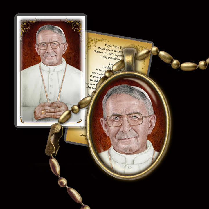 Our 1 x 1.25” (26mm x 30mm) oval glass tile medallion has the image adhered and sealed to a metal alloy pendant with an antique bronze finish. It can be worn as a necklace, or on your keyring. Choose matching 24" chain or matching 1” keyring. It comes packaged with a matching 3.5" x 5.5" LAMINATED PRAYER CARD making it a perfect gift for any occasion, Baptism, First Holy Communion, Confirmation and more. Your pendant is water-resistant, not waterproof. To clean and shine use a soft cloth.