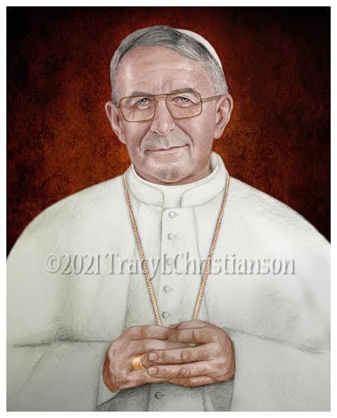 Blessed Pope John Paul I was born Albino Luciani in Italy in 1912, ordained a priest in 1935, a bishop in 1958, and a cardinal in 1973. On August 26, 1978, he became head of the Catholic Church and sovereign Pontiff until his sudden death 33 days later. It was one of the shortest reigns in papal history. He was the first pontiff to have a double name, John Paul, in honor of his predecessors, John XXIII and Paul VI. In 2017 he was declared venerable, and in 2021, a confirmed miraculous healing of an Argentinian girl of a severe brain disease is attributed to his intercession, putting him on the path to sainthood. On September 4, 2022, Pope Francis beatified him. He is known as “The Smiling Pope” and “Papa Luciani”.