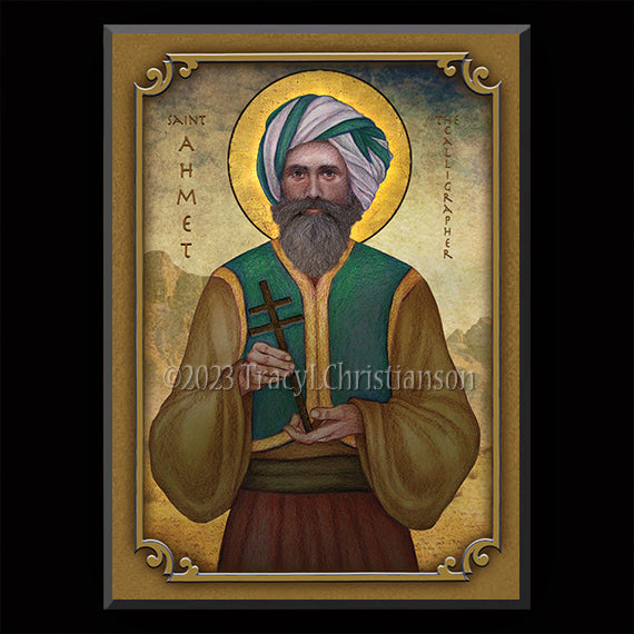 St. Ahmet the Calligrapher Plaque & Holy Card Gift Set