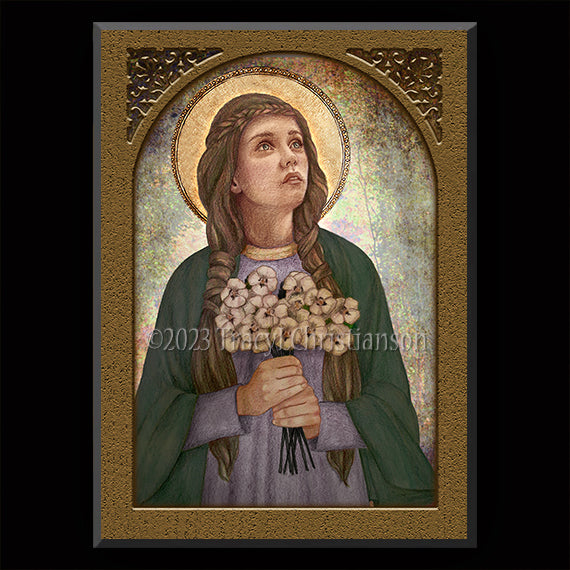 Our composite wood icons have beveled edges and a predrilled hole in the back for a wall mount. (Easel available.) They have a highly durable finish that is, water resistant, UV protected and safe for children. Choose from a 5.25” x 7.25” x .375” icon or large 7.25” x 10” x .375” icon. Made in the USA, both sizes come packaged with a matching 3.5" x 5.5" LAMINATED PRAYER CARD making it a perfect gift for any occasion, Baptism, First Holy Communion, Confirmation and more.
