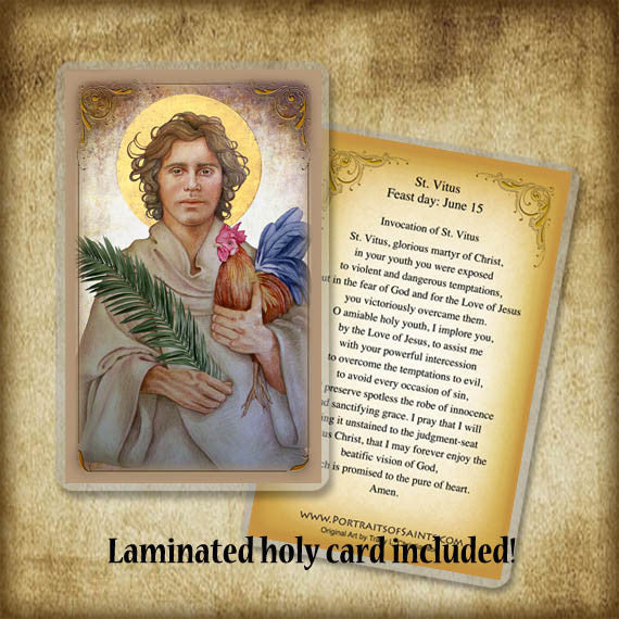 Saint Vitus c.290 - c.303 Feast Day: June 15 Patronage: actors, dancers, comedians, epileptics, dogs, and against oversleeping, snake bites, storms, animal attacks, lightning and Saint Vitus Dance (Chorea).