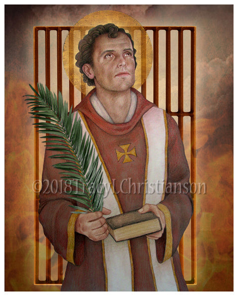 Saint Lawrence was a Roman deacon about whom little is known but because of his martyrdom massive conversions to Christianity were the result. One legend is told when the Roman Emperor Valerian wanted the material wealth of the church, St. Lawrence presented the true treasures, the poor, handicapped, widows, orphans, and the sick. This enraged Valerian so that he had Lawrence martyred by placing him on a gridiron and burned alive.