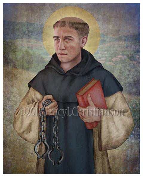 Saint Leonard, a French noble, who converted along with King Clovis I, was a monk who lived in a hermitage and founded the Noblac monastery. Through his prayers, he was able to secure the release of prisoners and prayerfully intercede for the Queen to deliver her child safely. Prisoners who asked for his intercession experienced their chains breaking, being released and then bringing those chains to St. Leonard as homage. He died of natural causes.