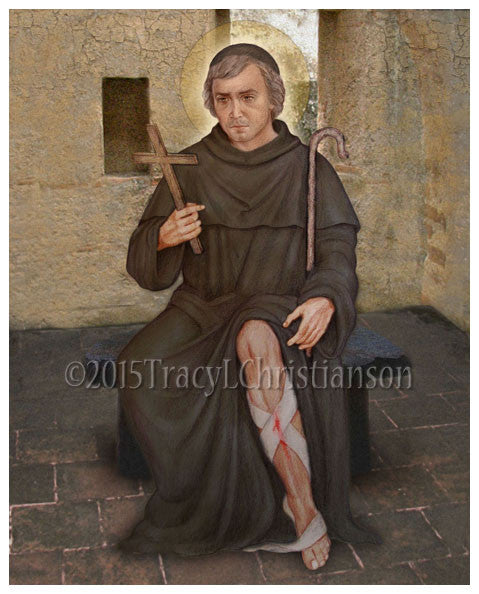 The youthful Italian Peregrine was so politically opposed to the papacy, that he struck St. Philip Benizi, who was trying to preach reconciliation. Being forgiven by the saint, he dramatically converted. Saint Peregrine eventually joined the Servants of Mary (The Servites) and became a priest. He dedicated his life to the sick, poor and the fringes of society. He was healed of a cancerous leg infection after contemplating Christ crucified, the evening before his leg was to be amputated.