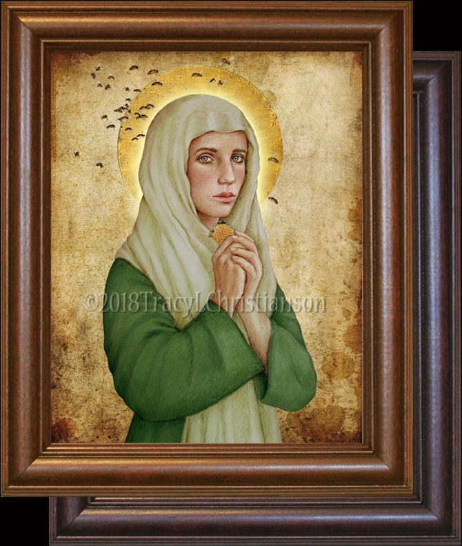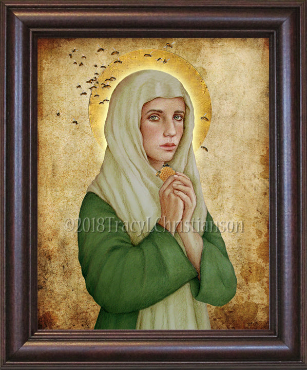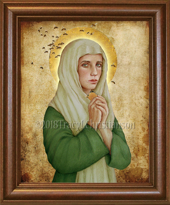 Saint Abigail was a Medieval Irish saint, also known as Gobnait (Irish for Abigail which means brings joy) or Deborah (meaning honeybee). She had a special relationship with bees and would care for the sick with honey and natural medicines. She is also credited with saving Ballyvourney from the plague. Abigail ministered to the people until her “soul left her body” which in Irish legend is represented by a flying bee.