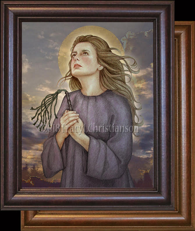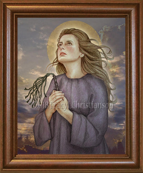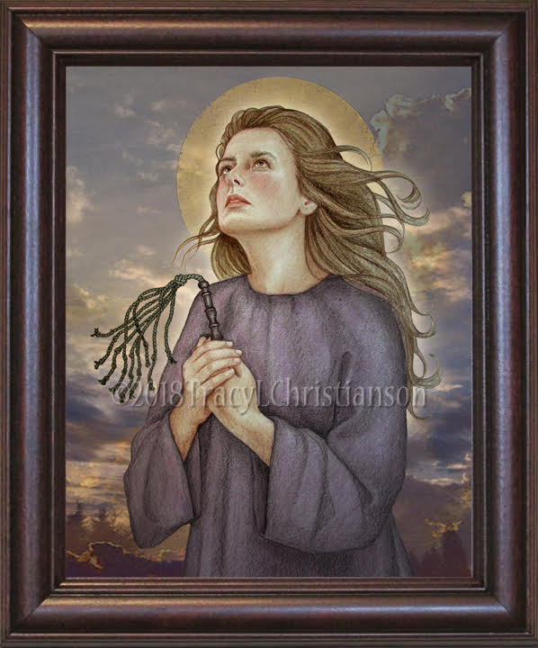 Saint Bibiana was a virgin and martyr who suffered persecution under Apronianus, Governor of Rome. After Bibiana’s parents were martyred she and her sister, Demetria, were left to suffer in poverty. Demetria died after confessing her faith, but Bibiana was left to endure greater suffering. She was sent to a woman of ill repute who in vain endeavored to seduce her and have her renounce her faith. When this failed Bibiana was then tied to a pillar and beaten with scourges until she died.