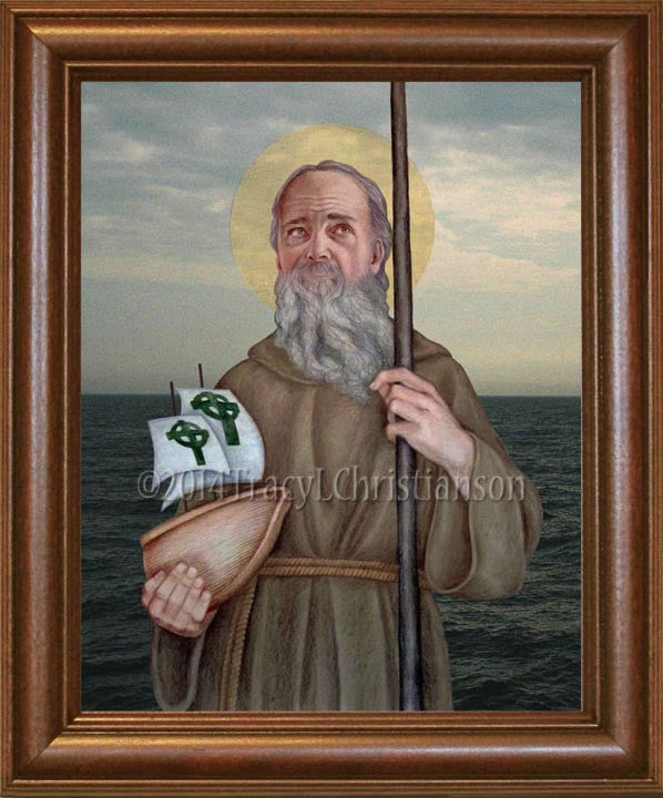 St. Brendan the Navigator, an Irish saint, lived from 484 to 577. He was one of the Twelve Apostles of Ireland. He is most known for his legendary travels, especially to the “Isle of the Blessed”, also known as Saint Brendan’s Island. He is said to have encountered a sea monster and to have celebrated Easter Mass on the back of a giant whale!