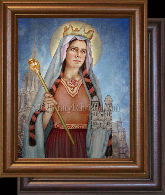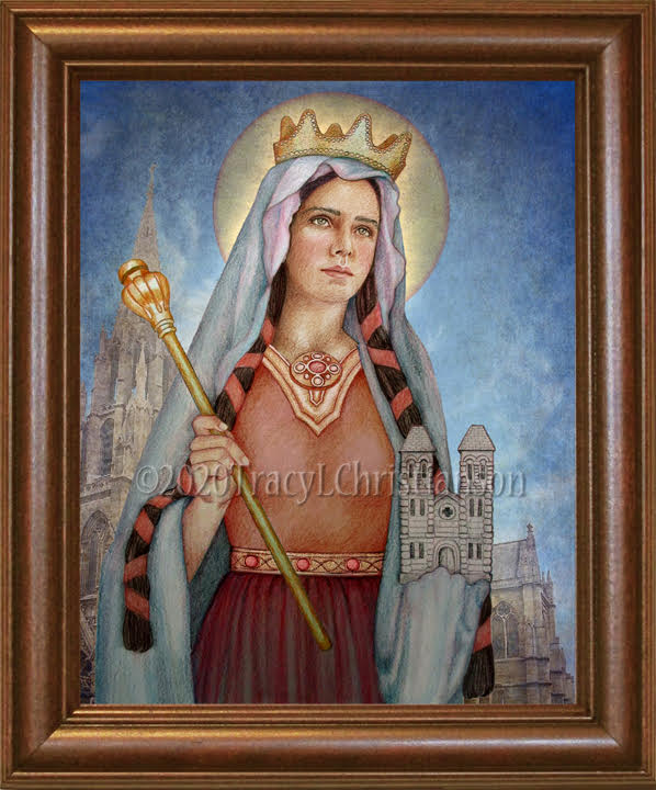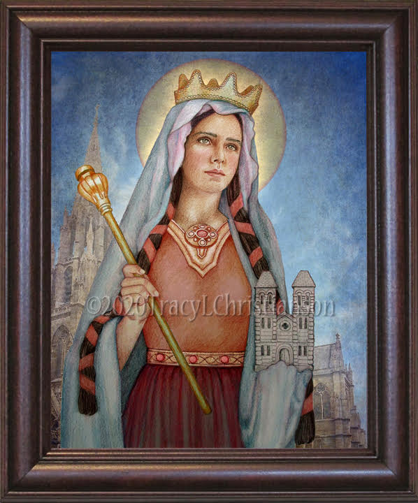 Saint Clotilde was married to King Clovis who ruled the Franks and was instrumental in the King's conversion. She is credited with bringing Christianity to Europe. Queen Clotilde was known for her charitable and penitential works of mercy. After Clovis’ death she retired to the Abbey of St. Martin of Tours and died of natural causes.
