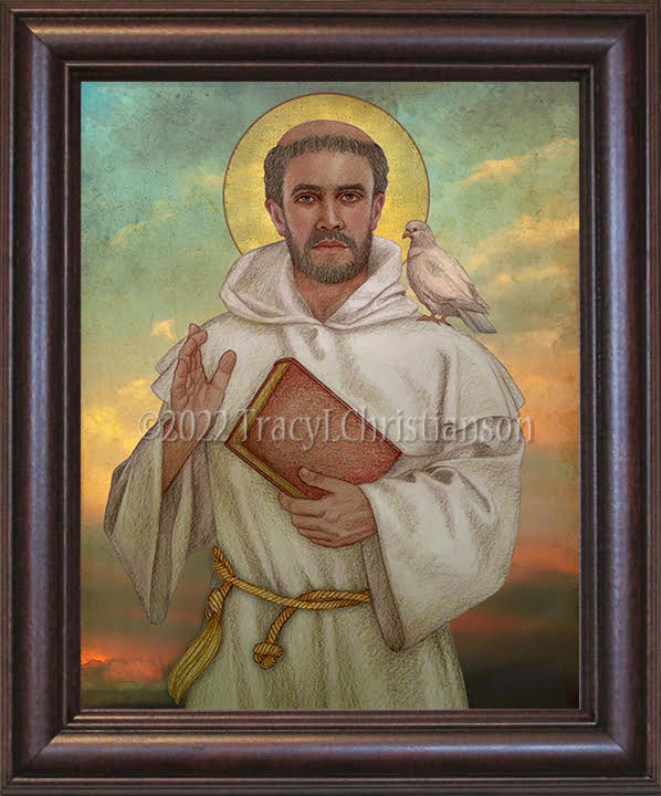 Saint Columban was Ireland's great missionary to Europe. He was classicly taught, lived as a hermit monk, and after 12 years in seclusion and prayer, traveled to Europe with 12 companions to preach the faith.He established many monasteries, the greatest being Bobbio Abbey which adhered to a disciplined, austere religious life. Columban wrote treatises on penance, poetry, the monastic rule and against Arianism.He died at Bobbio Abbey.