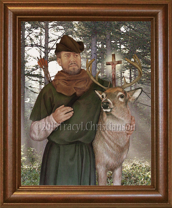 Saint Hubert or Hubertus was passionately devoted to hunting. While chasing a stag on a Good Friday morning, he received a vision of a crucifix between the animal’s antlers. A voice warned him,“Hubert, unless you turn to the Lord, and lead a holy life, you shall quickly go down to hell.” It was a conversion experience for Hubert. After his wife died he became a priest and later a bishop working passionately for Our Lord.