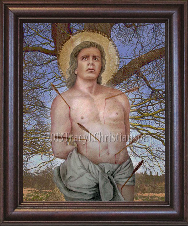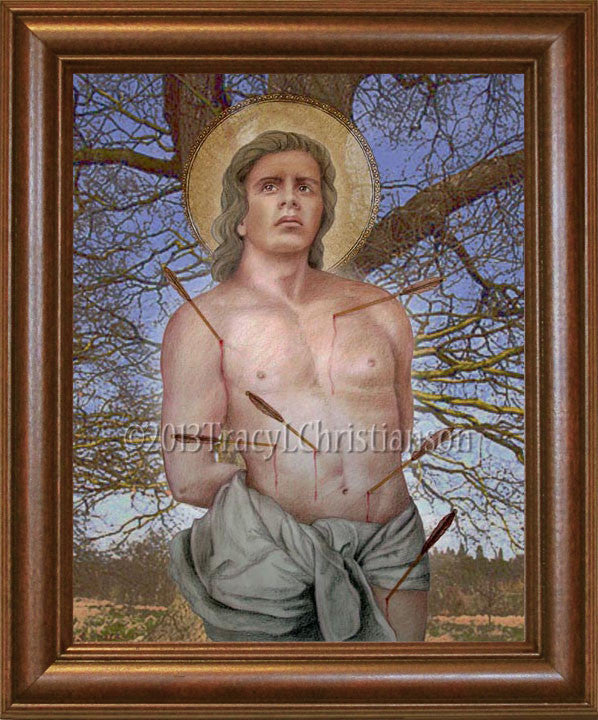 St. Sebastian was a brave Roman soldier who secretly converted many to Christianity in the 3rd century. He was ordered executed and was shot at with arrows and left for dead; a widow discovered him still alive and nursed him back to health, at which time he denounced the persecution of the Christians and was beaten to death. He is the patron saint of athletes and soldiers because of his extreme physical endurance and his brave and energetic way of spreading and defending the Faith.