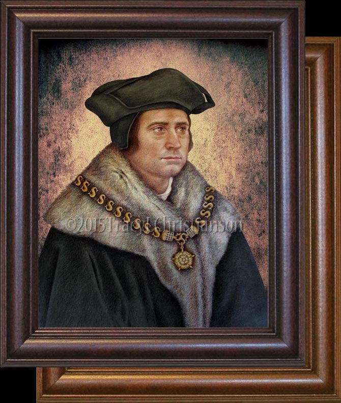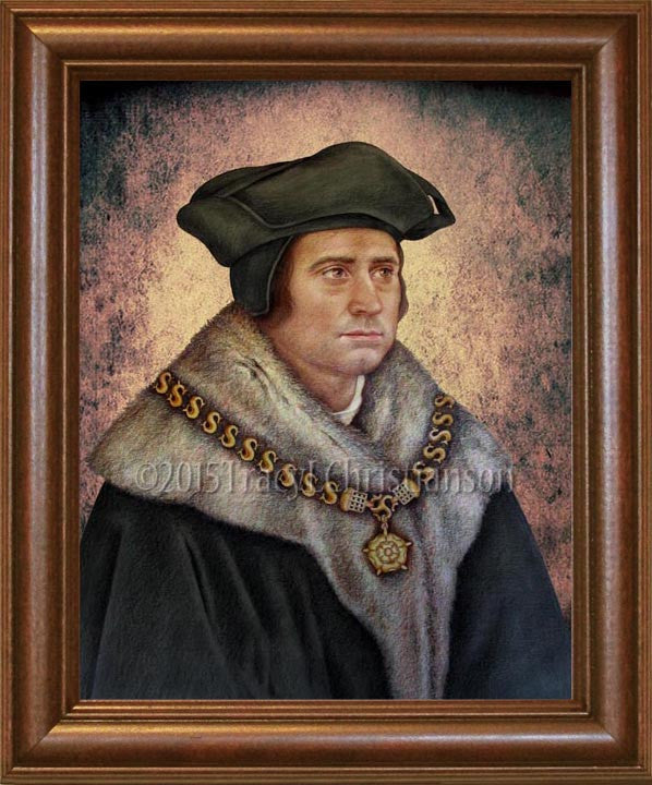 St. Thomas More was an English lawyer, social philosopher, author, statesman and noted Renaissance humanist. He was also a counselor to Henry VIII and Lord Chancellor from October 1529 to 16 May 1532. More opposed the Protestant Reformation, in particular, the theology of Martin Luther and William Tyndale. He also wrote Utopia, published in 1516, about the political system of an ideal and imaginary island nation. More opposed the King's separation from the Catholic Church, refusing to accept him as Supreme Head of the Church of England, and what he saw as Henry's bigamous marriage to Anne Boleyn. Tried for treason, More was convicted and beheaded.
